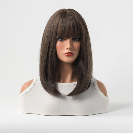 Nous vous présentons notre nouvelle perruque brune, lisse et à frange pour femme. Fabriquée à partir de fibres Kanekalon de haute qualité, cette perruque offre une coiffure raide, naturelle et élégante. Sa belle couleur brune est parfaite pour ajouter une touche d'élégance à votre look. Avec un design sans raie, elle peut se fondre sans effort dans n'importe quel style. Mettez en valeur votre beauté et renforcez votre confiance en vous grâce à cette perruque élégante et versatile. Essayez-la dès aujourd'hui et faites la différence !